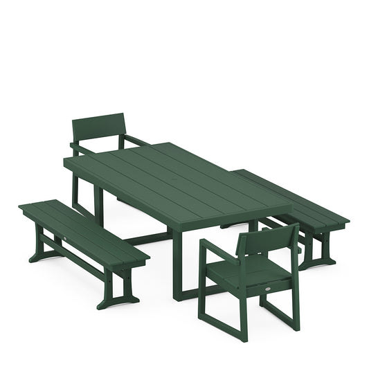 Edge 5 Piece Dining Set with Benches